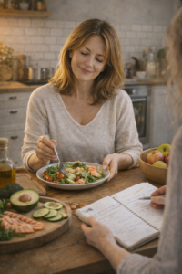 L’un des problèmes que je rencontre le plus souvent est la perte de repères alimentaires à la ménopause. Vous mangez parfois « comme avant », mais votre corps réagit différemment : prise de poids abdominale, troubles digestifs, fringales, fatigue persistante. Je vous aide à comprendre ce qui se joue sur le plan hormonal et métabolique, sans culpabilité ni restrictions inutiles. Ensemble, nous ajustons votre alimentation pour qu’elle soutienne votre énergie, stabilise votre glycémie et apaise l’inflammation. L’objectif n’est pas de suivre un régime, mais de retrouver une relation sereine et consciente à la nourriture, adaptée à cette nouvelle phase de vie.